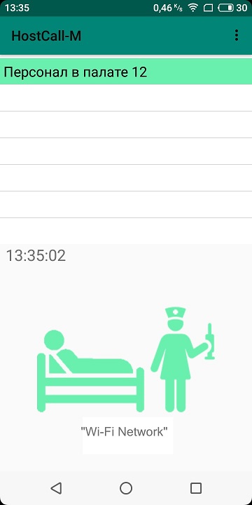 На экране смартфона будут отображаться вызовы из палат, часы текущего времени,