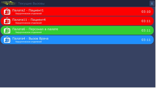 - отображение вызовов из выбранных отделений в режиме реального времени.